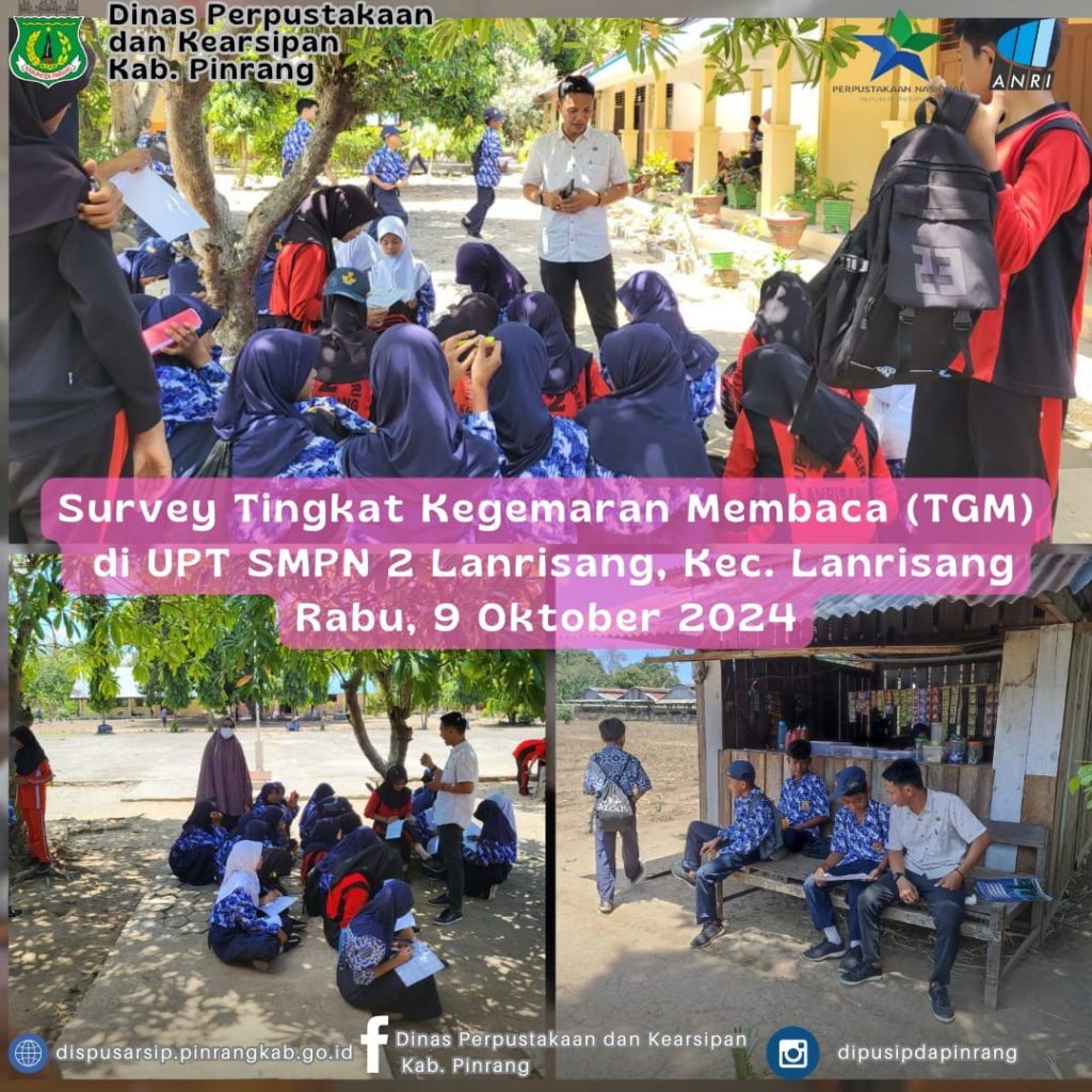 Dinas Perpustakaan dan Kearsipan melakukan Survey Tingkat Kegemaran Membaca (TGM) di SMPN 2 Lanrisang Kec. Lanrisang.